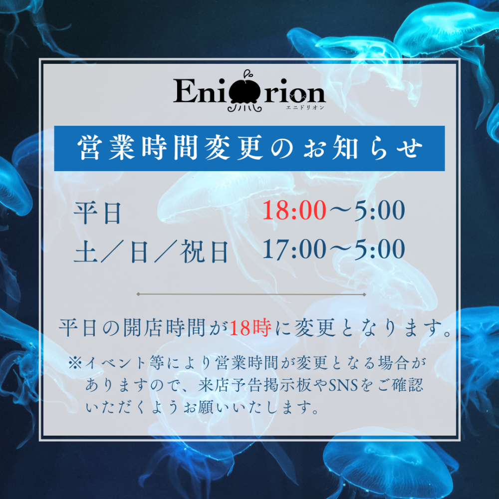 ※イベント等により営業時間が変更となる場合がありますので、来店予告掲示板やSNSをご確認いただくようお願いいたします。
