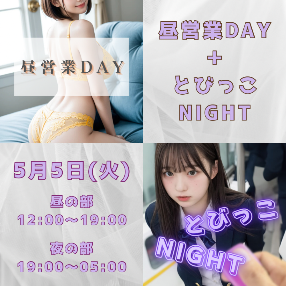 5月5日(火) は、昼営業DAY☀️+とびっこNIGHT😳❣️
