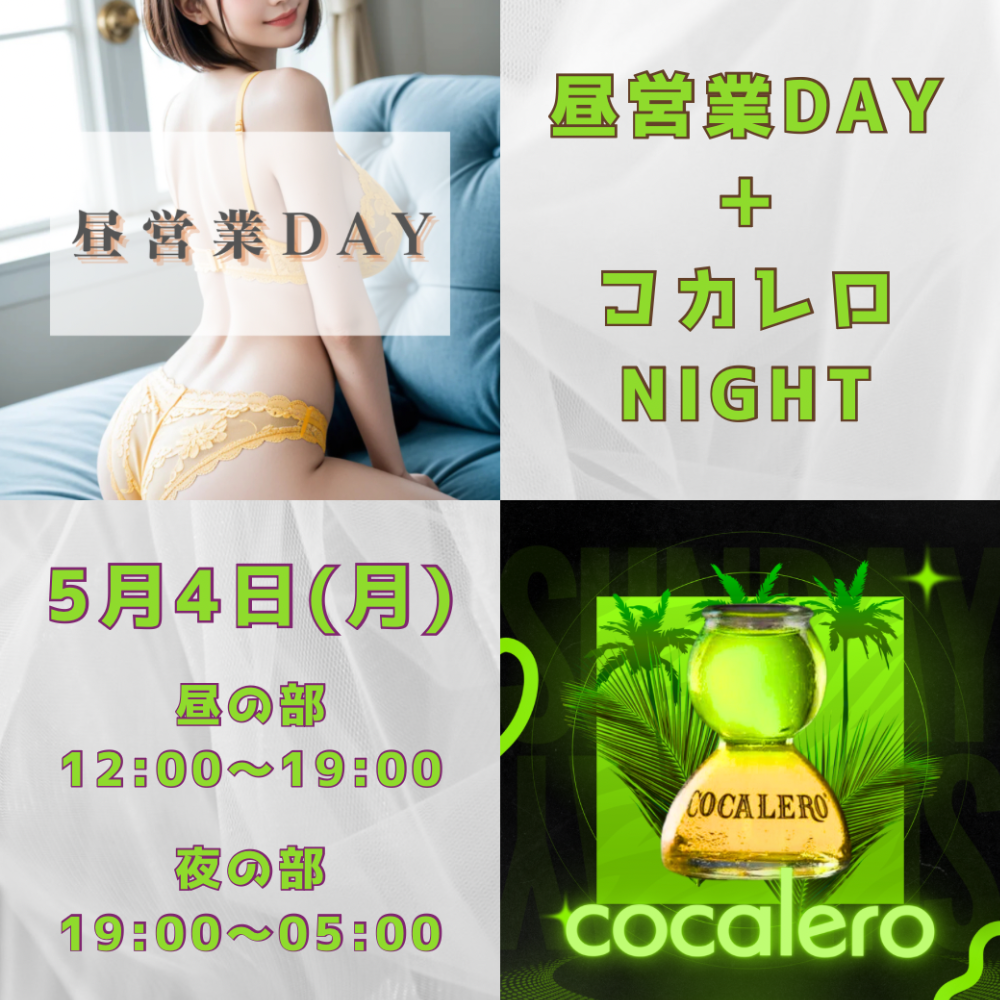 5月4日(月) は、昼営業DAY☀️+コカレロNIGHT🍋🟩🍸